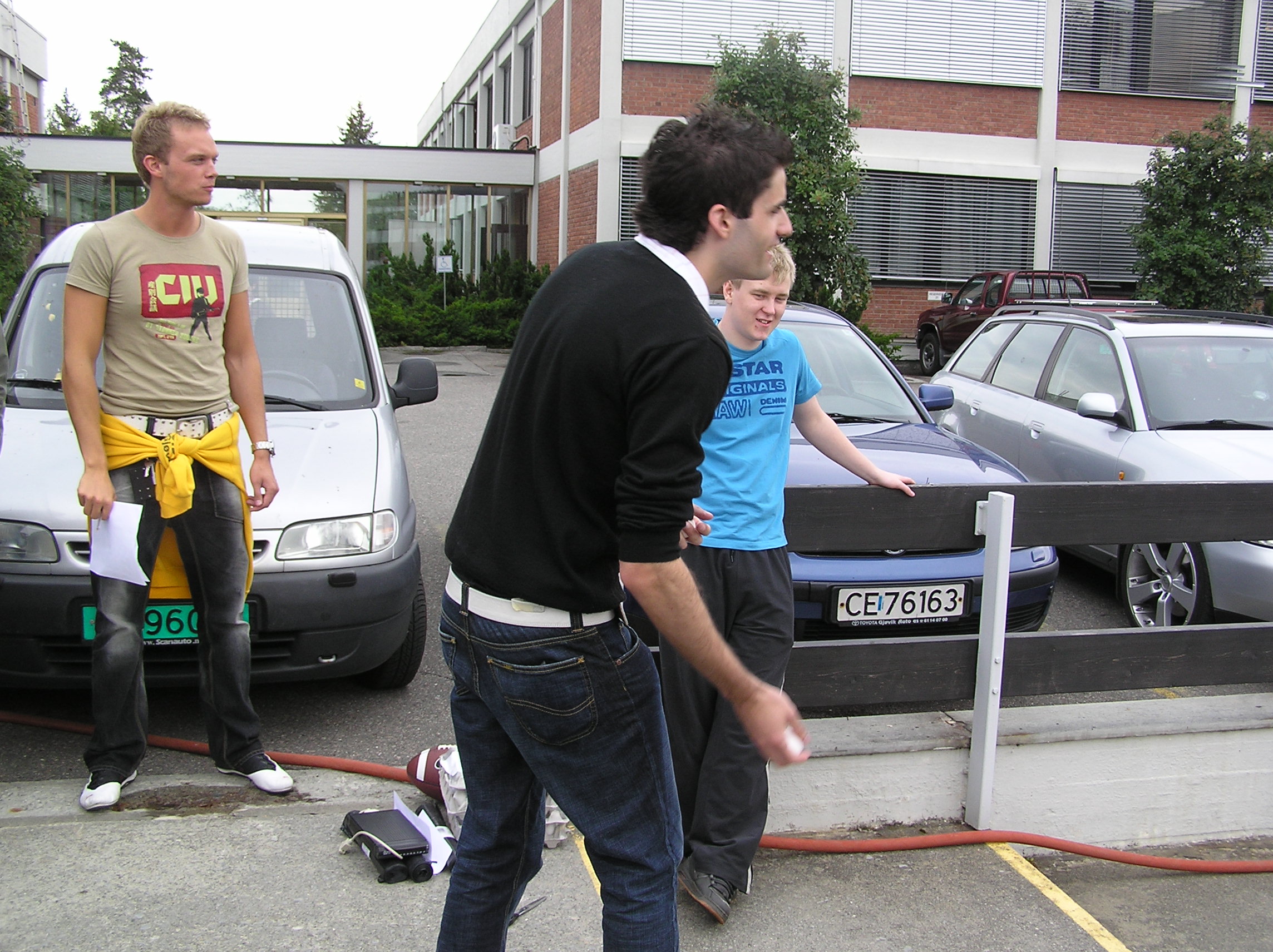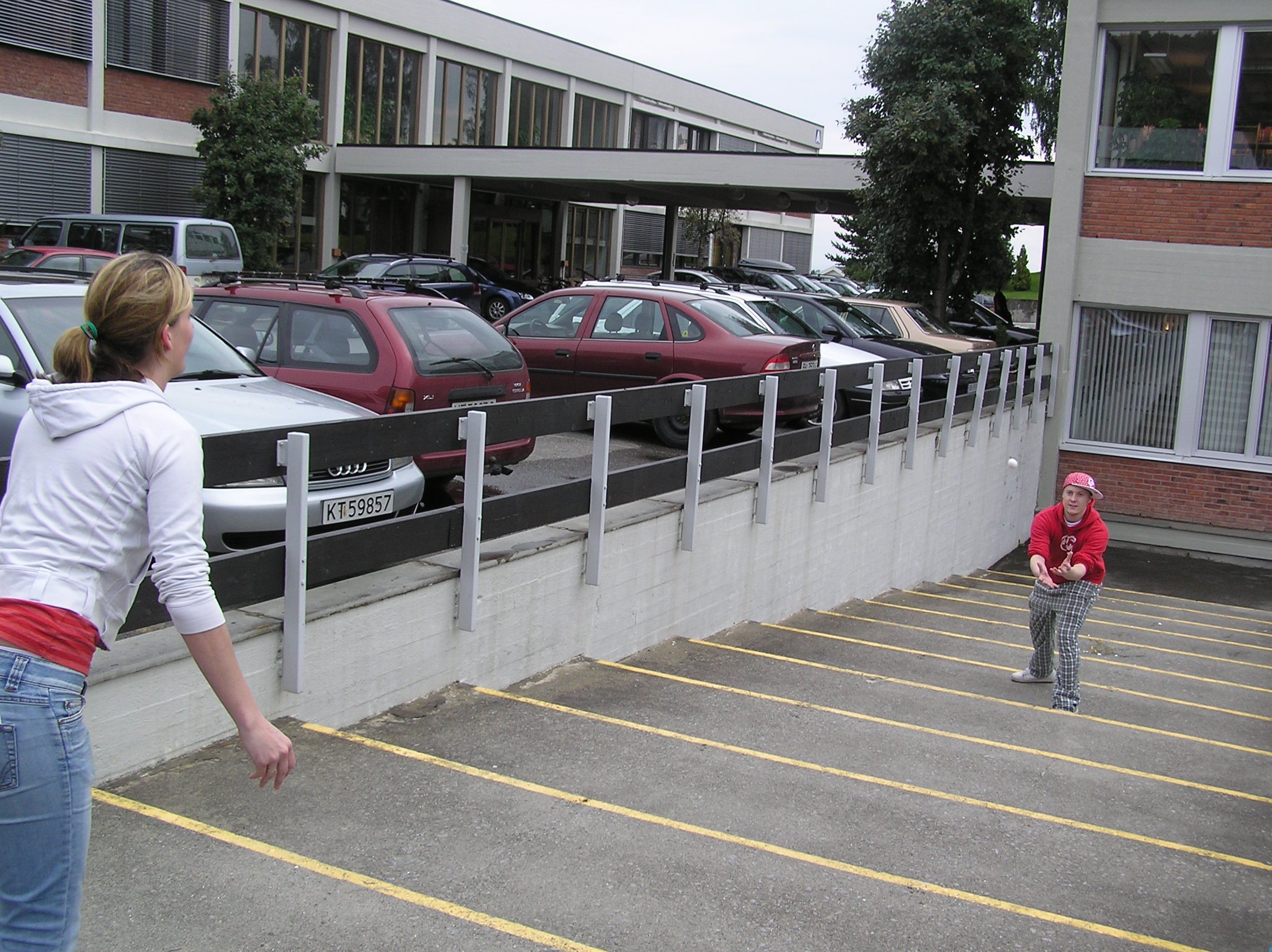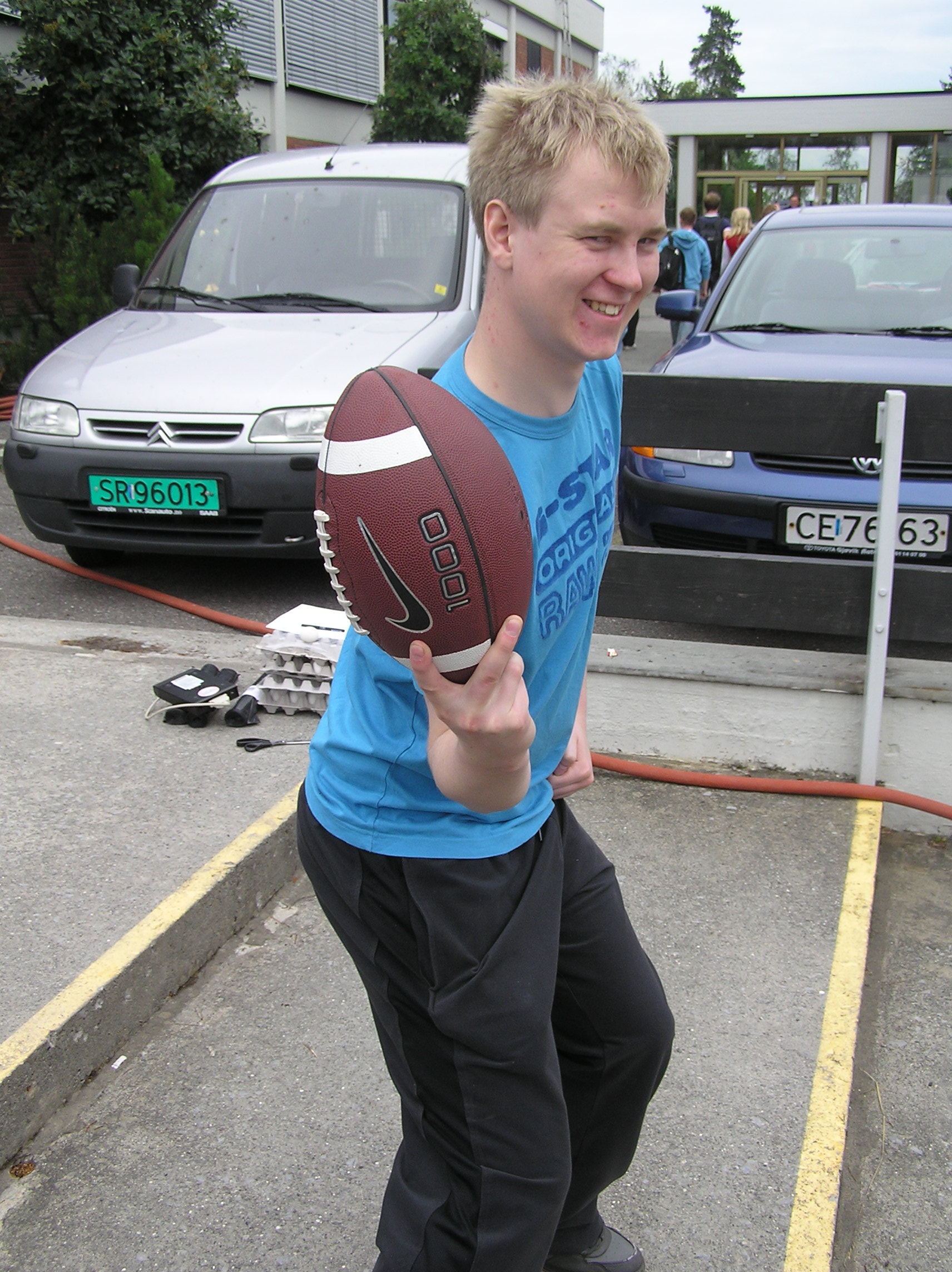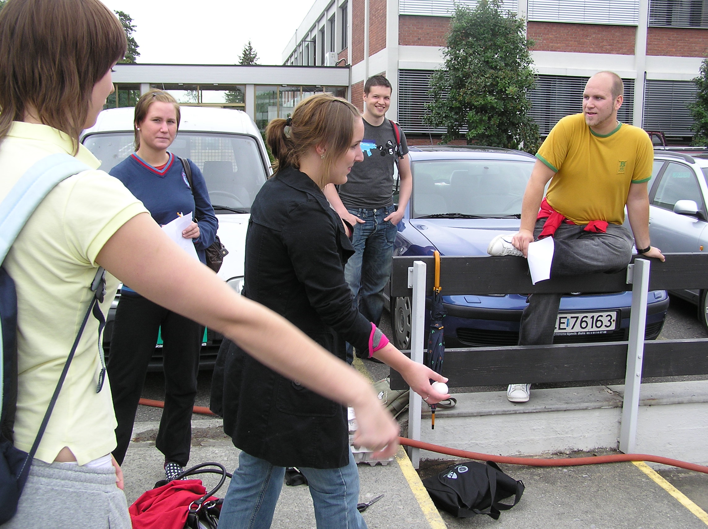Vi hadde gått til innkjøp av en større mengde egg, noen bossekker, og lånte Økonomi(u)ansvarliges saks for anledningen. Siden kastegruppa anerkjenner at mottaket kan være en viktig del av kastet, ble poeng gitt for mottak i oppgaven vår. Gruppene kunne få maksimalt fem poeng, og fikk ett poeng per trappetrinn egget passerte på vei mot mottakeren. Dersom det endret egenskaper ved mottak (knuste i hånden på mottaker) ble de trukket to poeng. Dersom de valgte å ikle seg bossekker for å unngå å bli tilgriset, ble de også trukket to poeng.