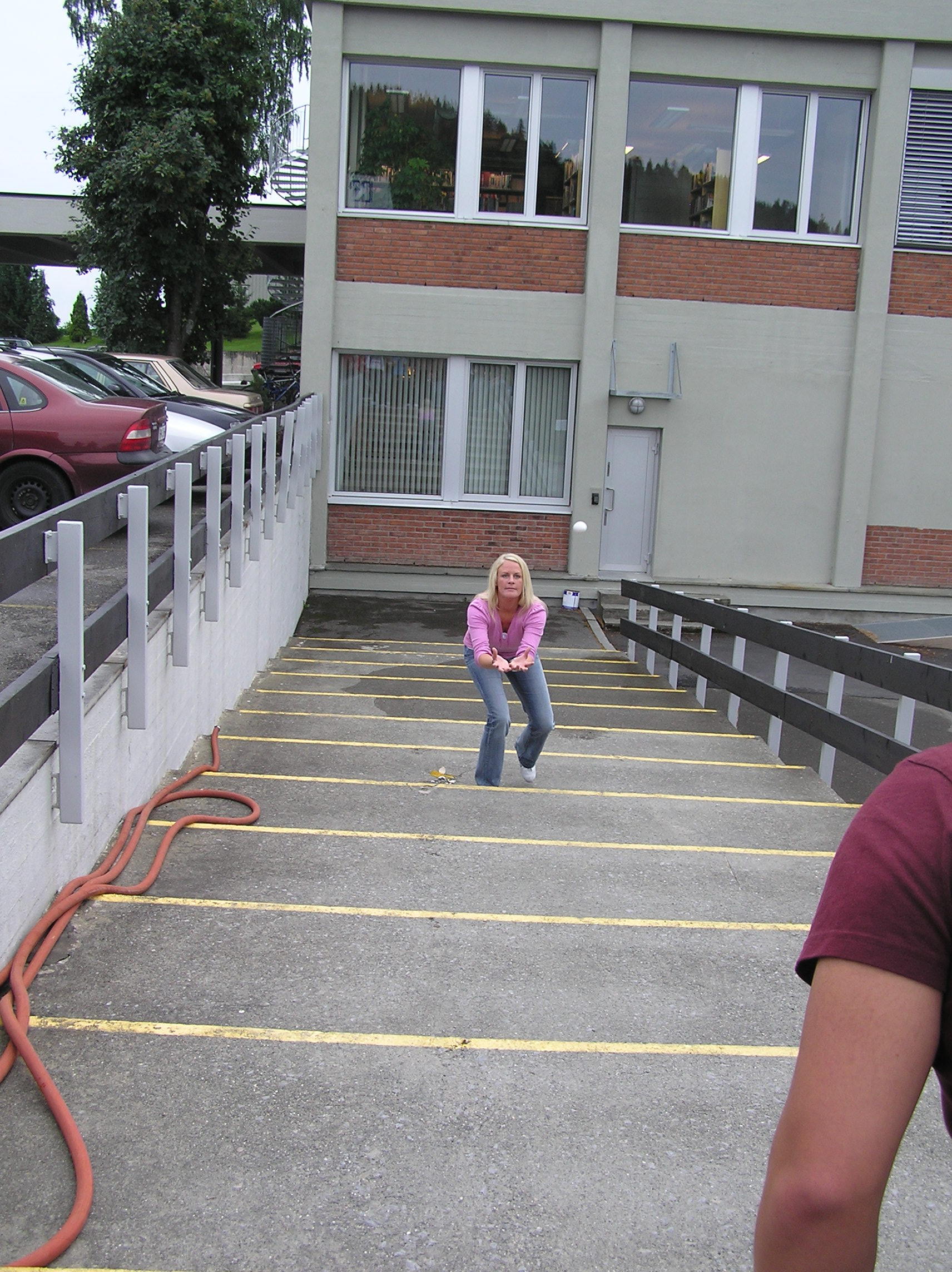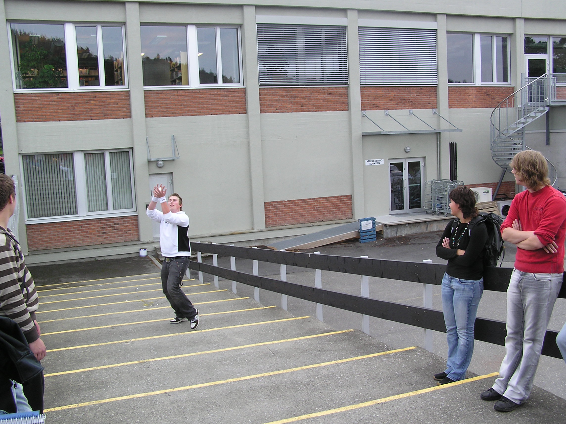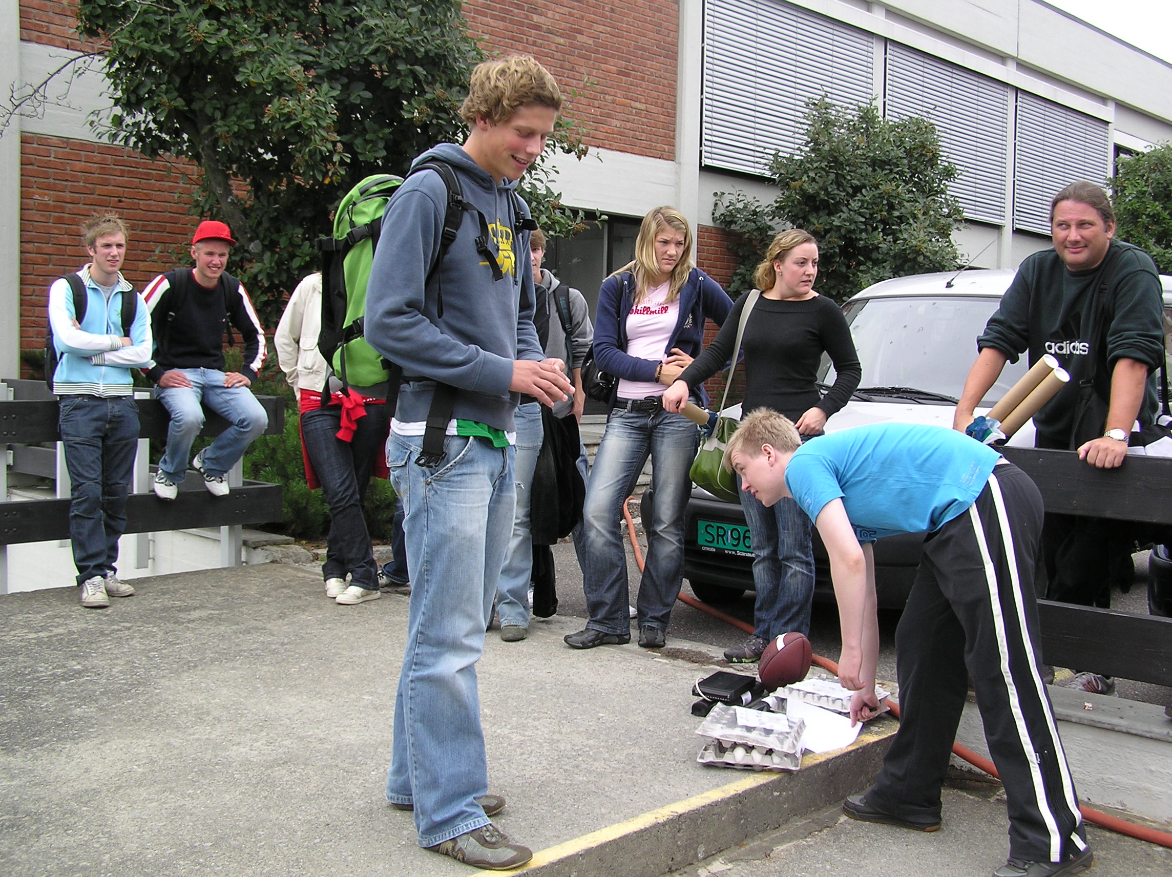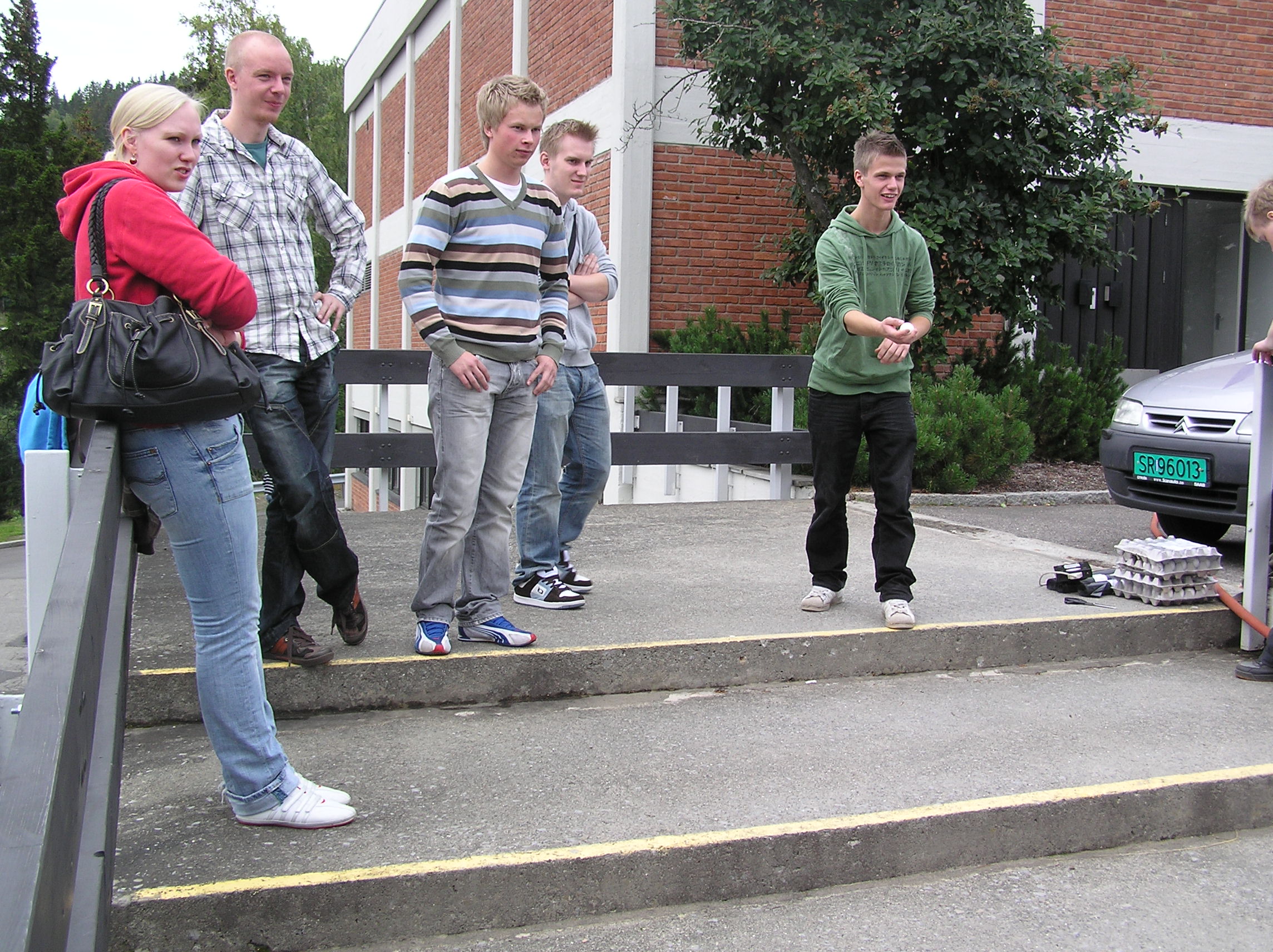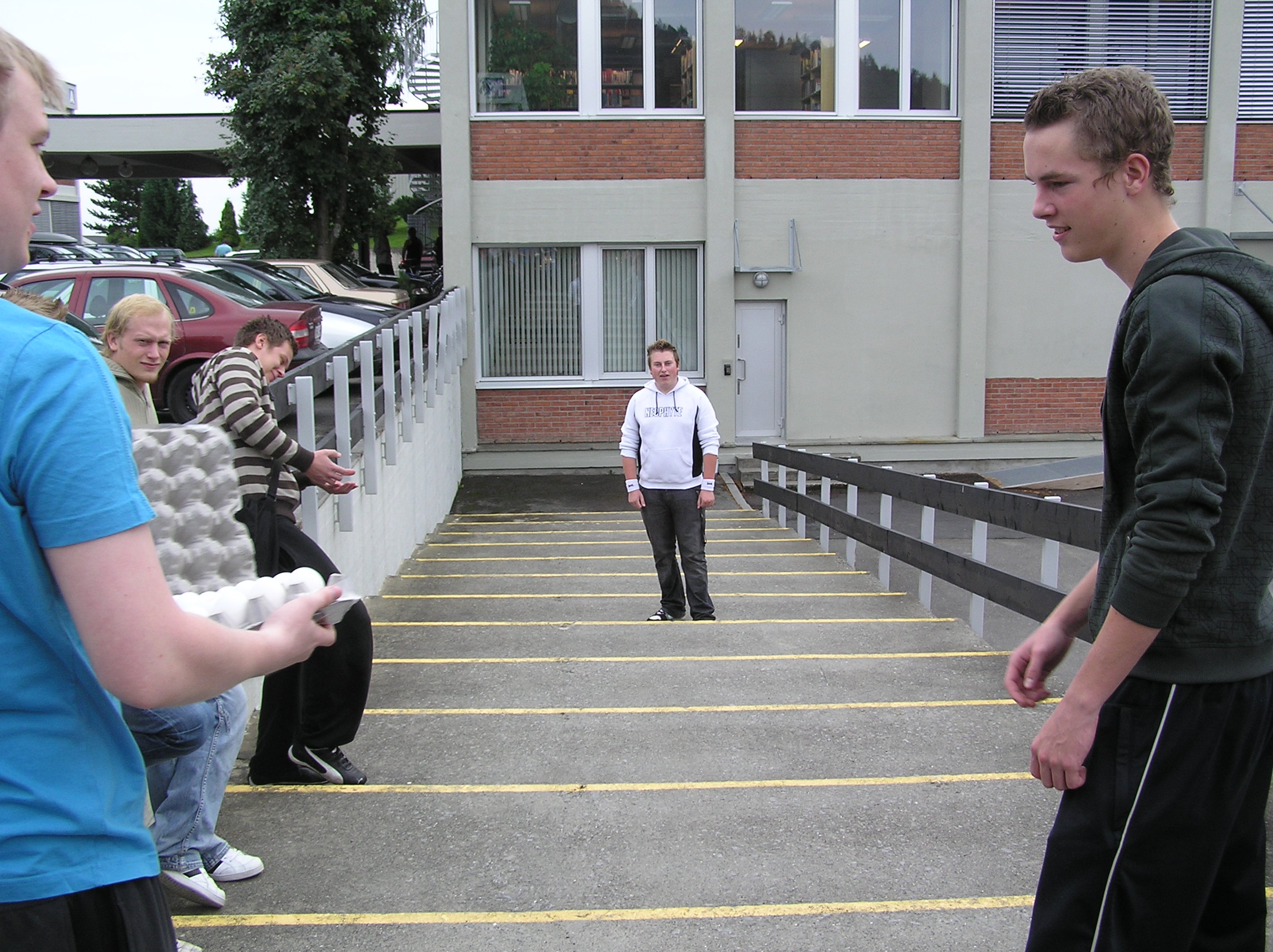 Det viste seg at eggene var veldig robuste. Mer robuste enn vi hadde antatt. De klarte uten større problemer å bli kastet ned hele trappen uten å knuse ved mottak. Oppgaven var like fullt skremmende for de som ikke hadde sett tidligere grupper, da de nye studentene, som oss, antok at egget ville knuse lettere enn det gjorde.
